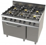 Cocina a gas con horno MAXI GN2/1 con válvula termostática de 6 fuegos 2x8+4,5+3x6 Kw Serie 900 JUNE
