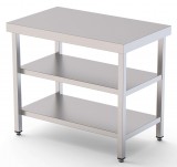 Mesa de Trabajo Acero inoxidable Central Con 2 Estante 1000x800x850h mm WTC180100S2